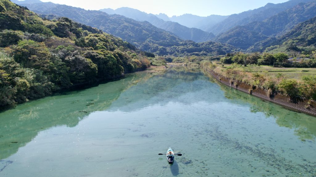 自然本来の美しい川を見ることができる横川渓谷 施設から徒歩で25分 道中にはポンカンやタンカン畑が多く永田ならではの景色を見ながら探索できます。夏場は滝壺で泳いだり涼「見どころ」永田岳を拝みながらゆったりSUPがおすすめです。