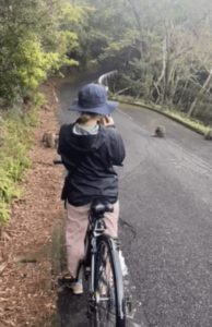 自転車に乗って西武林道へ野生のアニマルウォッチングへ車で行くよりより臨場感を楽しめます。猿とは目を合わさないようにしてください。